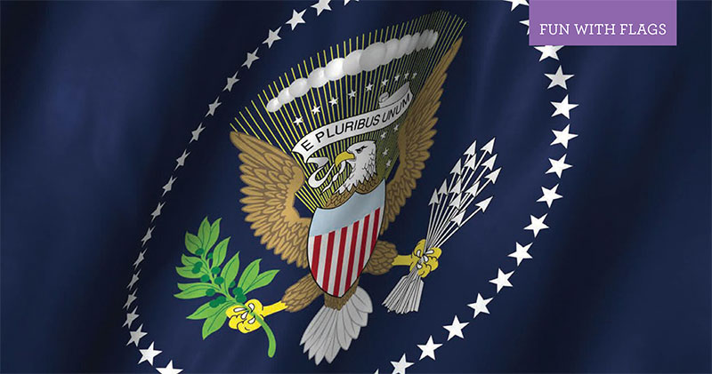 he flag of the President of the United States consists of the presidential coat of arms on a dark blue background. The flag contains elements of the presidential seal that is used on official documents, however, the seal itself and the flag have separate histories.