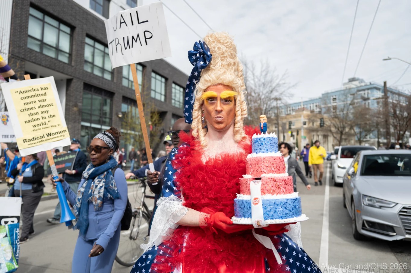 Protesters at the No Kings march in Seattle, WA on March 28, 2026. (Alex Garland, CHS)