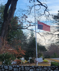 When I saw this flag display, I knew immediately what it was for: the 37-yr old mother of 15-, 12-, and 6-year-old children that was fatally shot for protesting, which is legal and protected by the First Amendment of the United States.