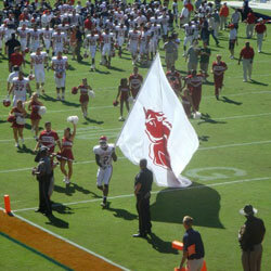 Now here's an industry that uses every technique available. Schools use flags and banners to promote teams, inform fans, and intimidate competitors. We work with customers all over the United States to create exciting college banners, reunion banners, stadium decorations, school flags, NCAA college banners, championship banners, vinyl adhesive banners and street pole banners. We can even do logo decals and fleet graphics. Call us today to get your free quote at 800-445-0653 or email at sales@flagandbanner.com.