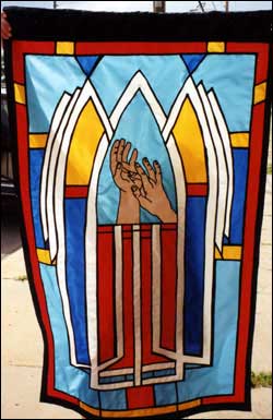 Looking for a church banner or a custom church sign? For church banner design, look to Flag and Banner. FlagandBanner.com has been privileged to create some of our most beautiful work for churches and religious groups. Most of these designs are appliquéd by hand by our skilled seamstresses. Look below to see how the right banner can reinforce your message, add an appealing visual element to your sanctuary, or bring attention to the exterior of your facilities.