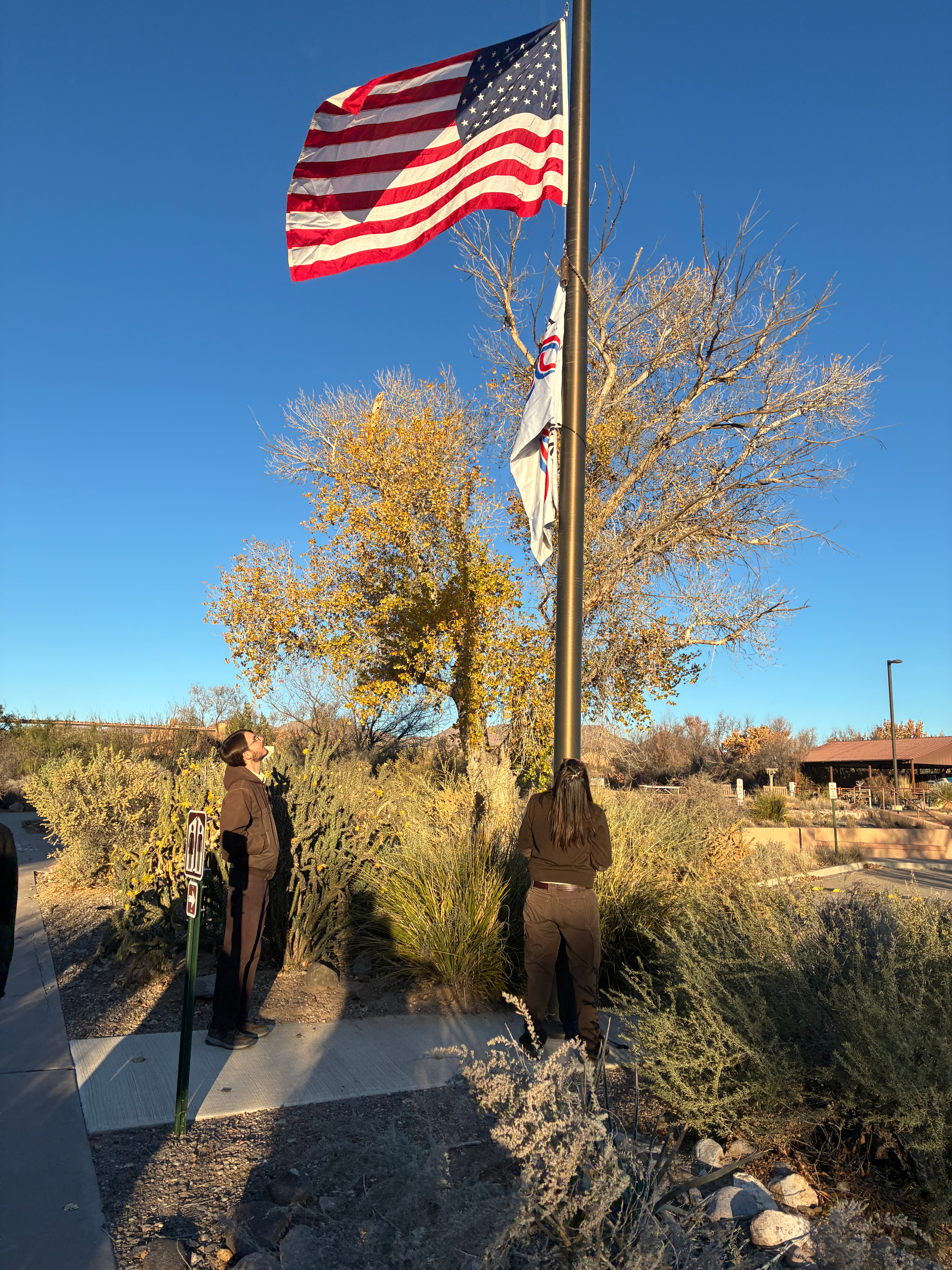 Flags raised at Bosque del Apache National Wildlife Refuge on December 2, 2025 (Bernard Lujan, USFWS)