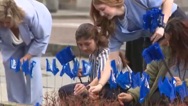 Child Abuse Prevention Month began Wednesday in Harrisburg with a visual display of blue flags.