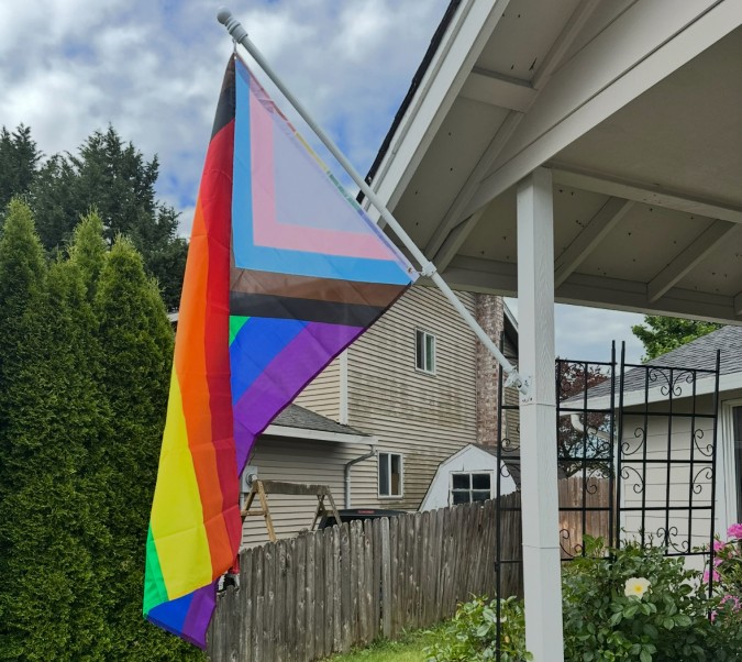 Tiffany Rollins’ Pride flag before it was stolen from her home in the Orchards area. (Photo by Tiffany Rollins)