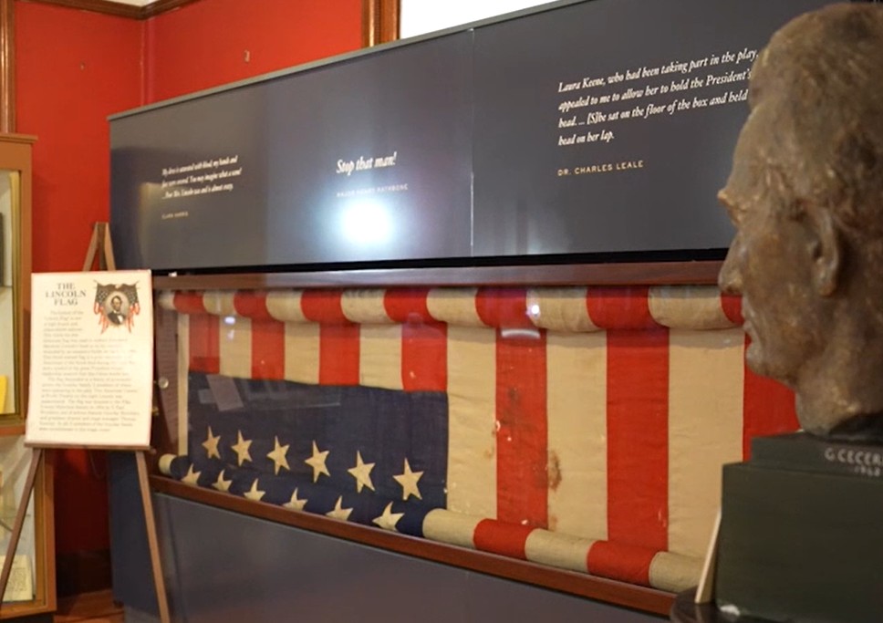 The Lincoln Flag, the one used to cushion the dying president in 1865, is on display at the Columns Museum in Milford, Pennsylvania. (abc News)