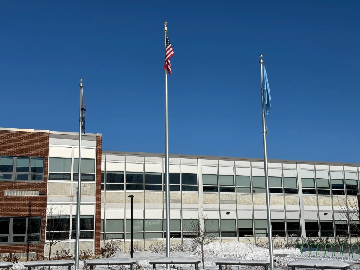 The Somali flag was raised beside an American and Vermont state flag. (Winooski School District)