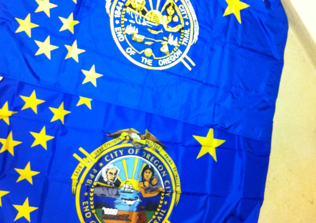 Two versions of the current Oregon City flag (Photo: City of Oregon City)