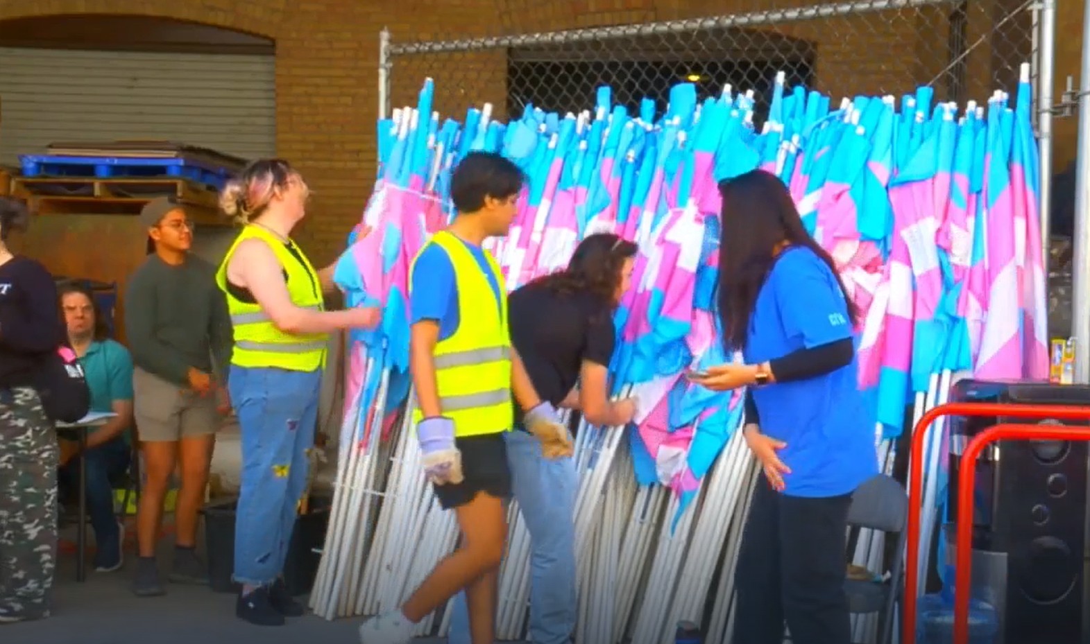 Hundreds of pink, white and blue flags were staked across Utah ahead of Trans Day of Visibility on March 31.