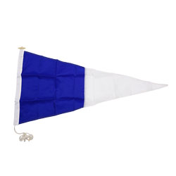 From the International Code of Signals, this long-lasting nautical pennant is made from nylon fabric with double-stitched seams, canvas heading, rope and snap hook. Made to order. Please allow 2 weeks for delivery if not in stock.