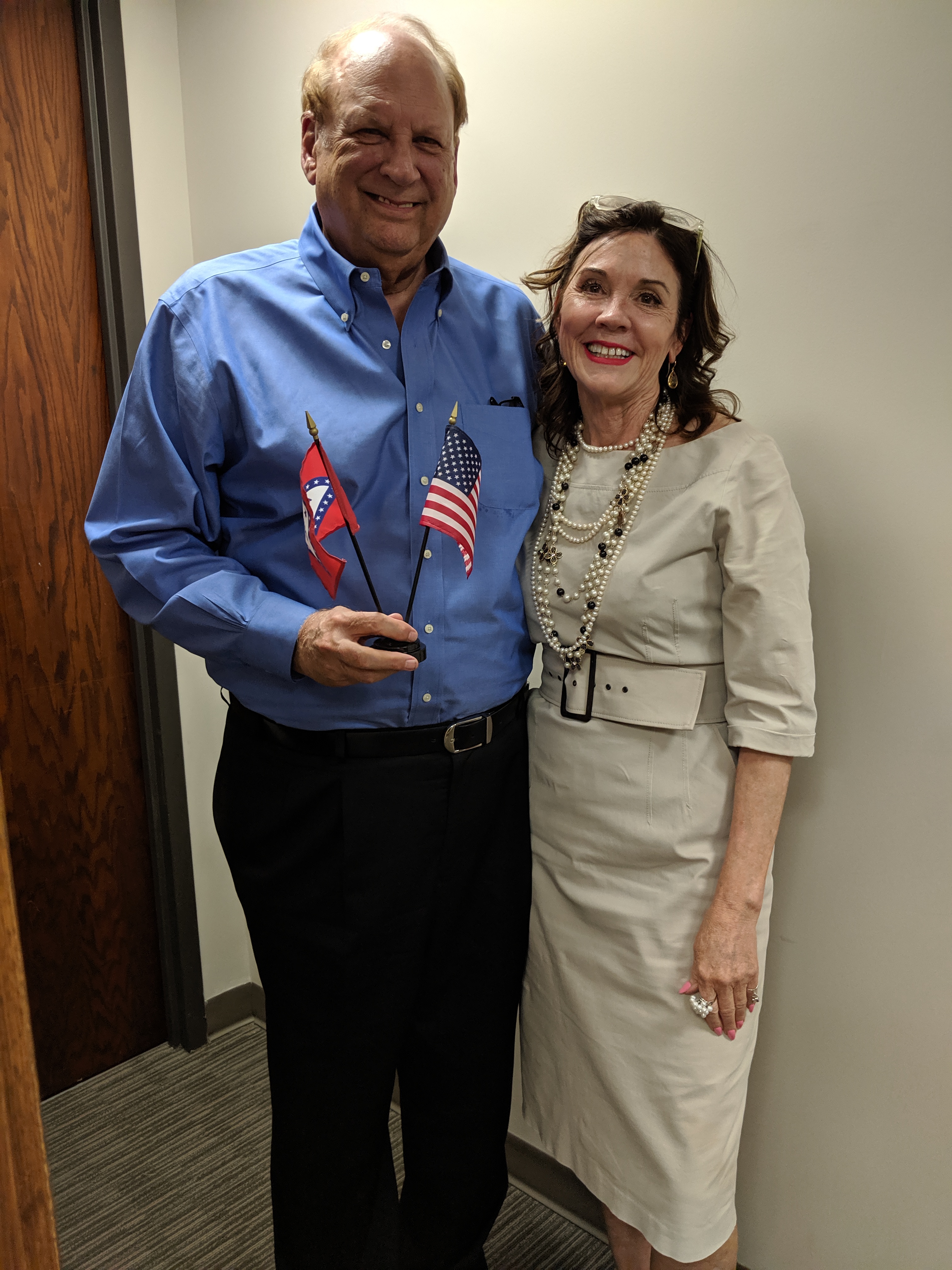 [00:45:47] KM: You’re a great person. I have so enjoyed meeting you. I have a gift for you. It’s a desk set. U.S. and Arkansas flag desk set. Do you have one those?